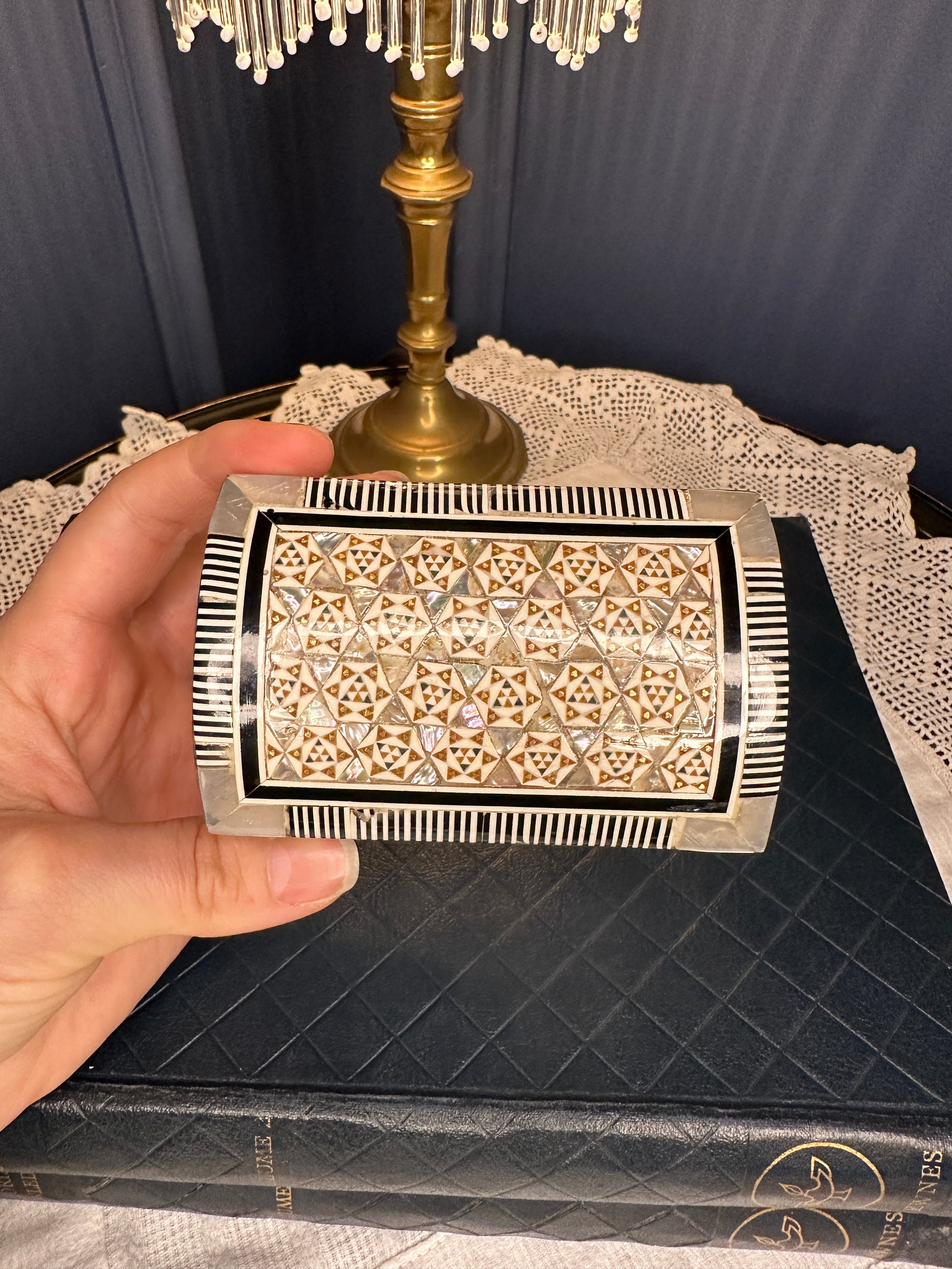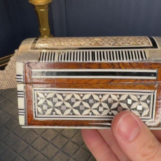 Handmade Inlaid Wooden Jewelry Box with Bone & Mother-of-Pearl | Velvet Lined Trinket Chest | Artisan Keepsake Box