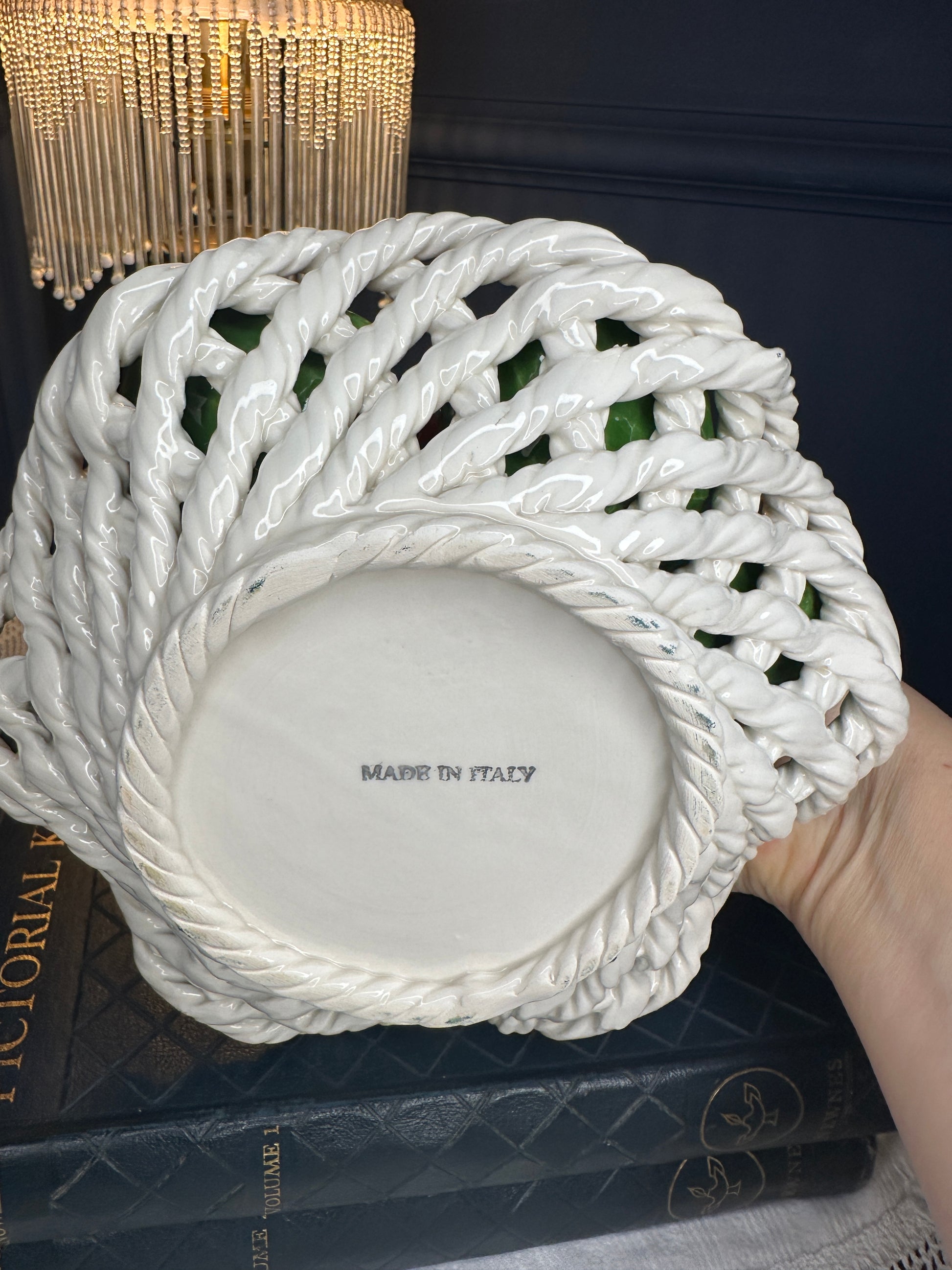 Bring timeless Italian charm into your home with this stunning vintage Italian ceramic cherry basket, beautifully handcrafted and marked “Made in Italy.”