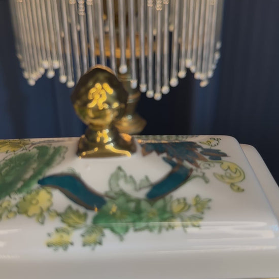 Crafted in England and featuring Mason’s signature green floral and scroll design, this elegant ceramic clock combines traditional chinoiserie styling with practical quartz movement. The decorative gold-tone bezel and finial add a refined finishing touch, making it perfect for mantelpieces, sideboards
