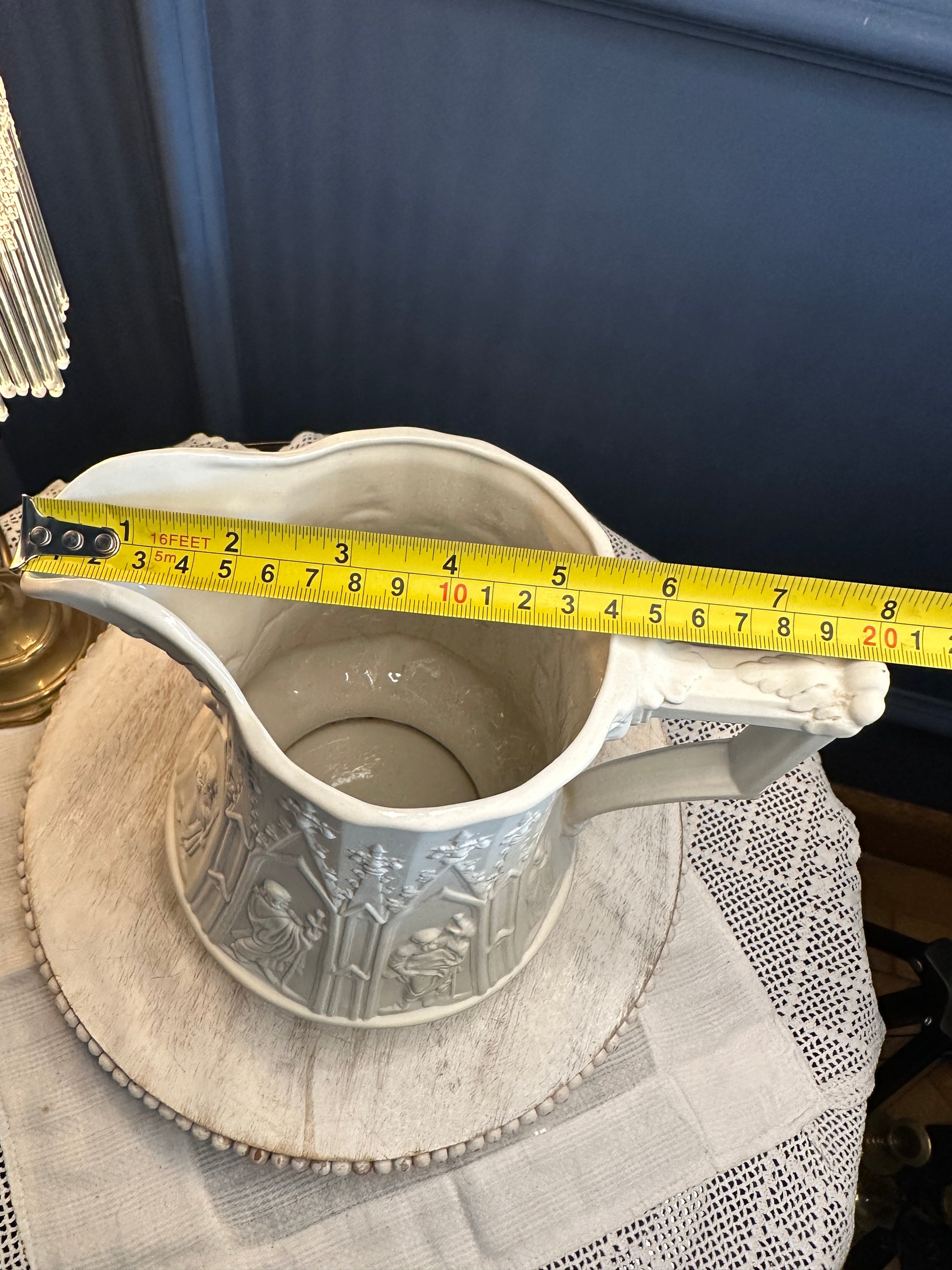 Vintage Portmeirion “Totem” Gothic Relief Jug – Large White Stoneware Pitcher, Made in England